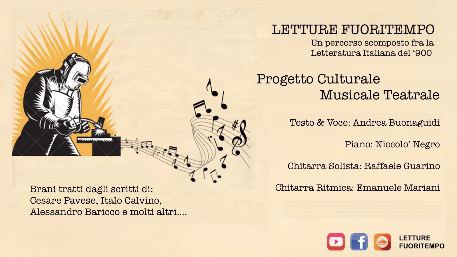 Letture Fuoritempo è un Progetto Culturale Teatrale Musicale nato negli ultimi due anni dalla collaborazione di quattro musicisti Italiani a Melbourne: Andrea Buonaguidi voce narrante, Raffaele Guarino chitarra solista, Niccoló Negro pianoforte ed Emanuele Mariani chitarra ritmica. Un percorso scomposto fra la letteratura Italiana del ‘900 con brani di Cesare Pavese, Italo Calvino, Alessandro Baricco e molti altri. Il concerto, unica data in programma, si è svolto a Melbourne il 2 luglio 2022 presso l’Officina Metallurgica Arsteel a Mulgrave, davanti a circa 50 persone A seguito dell’esperienza dal vivo sul palco è stato registrato presso lo studio The Recording Space di Melbourne un mini album di 9 tracce. Tutti i brani dell’album, in alta definizione e in formato .wav possono adesso esser ascoltati e scaricati liberamente, qui sotto.