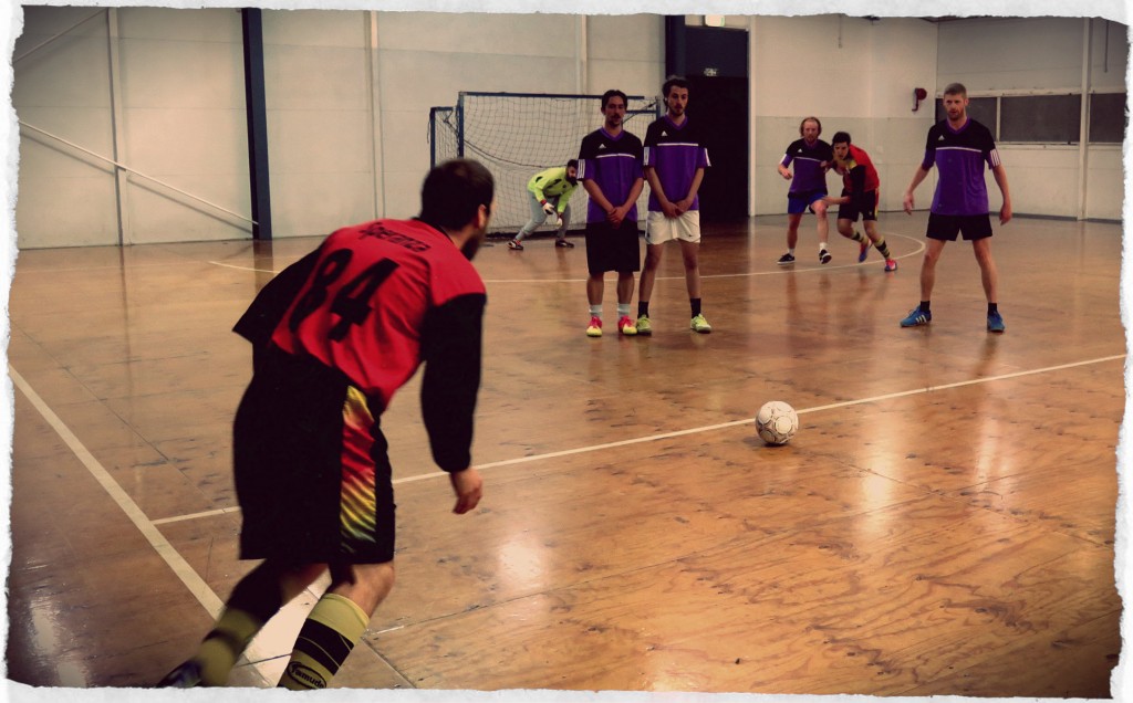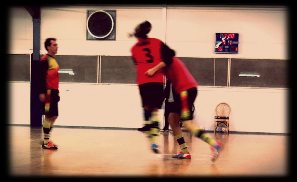 Al 15esimo del primo tempo il forte attaccante Catanese s’invola in contropiede sulla fascia e il loro portiere gli fa un’entrata alla De Jong da arresto. Rosso diretto e rigore per la MelbournePuntoit FC 2012. Era tanto che non si vedeva un fallo del genere. Loro restano in quattro giusto il tempo del rigore. Tiro, goal e il sesto giocatore loro può entrare in porta. Di nuovo 5 contro cinque, due a zero e palla al centro.