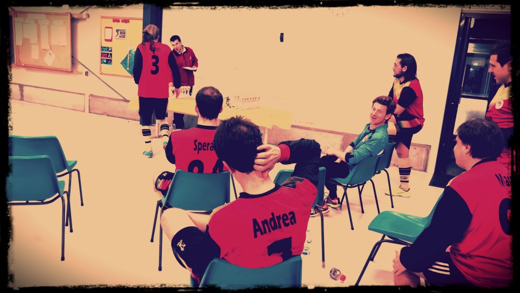La partita é tiratissima fin dagli inizi. Loro spingono subito e subito dall’inizio si dimostrano inclini alla zizzania. Per lo più son tiri da lontano ma potrebbero benissimo esser tiri alla viva il parroco. La trance agonistica in campo é altissima.